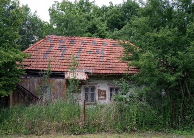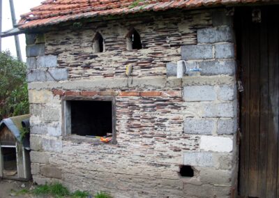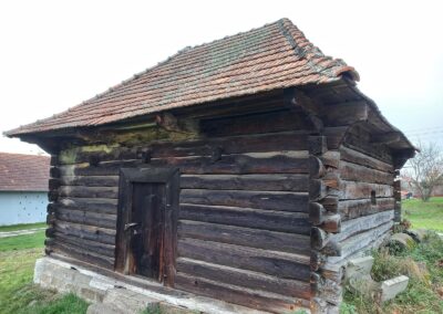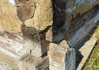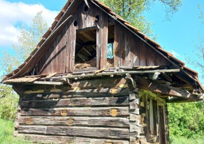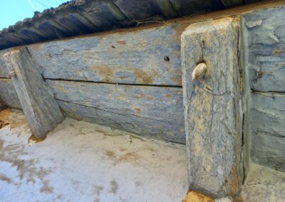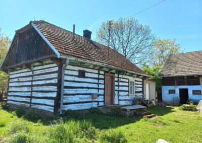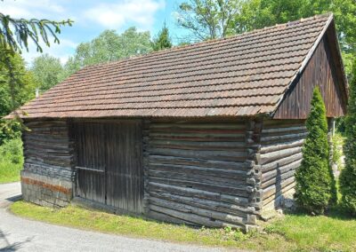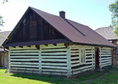 Wolno stojące budynki gospodarcze wznoszono stosując taką samą technikę zrębową, jak przy budowie chat (zdj. 14 – 16).