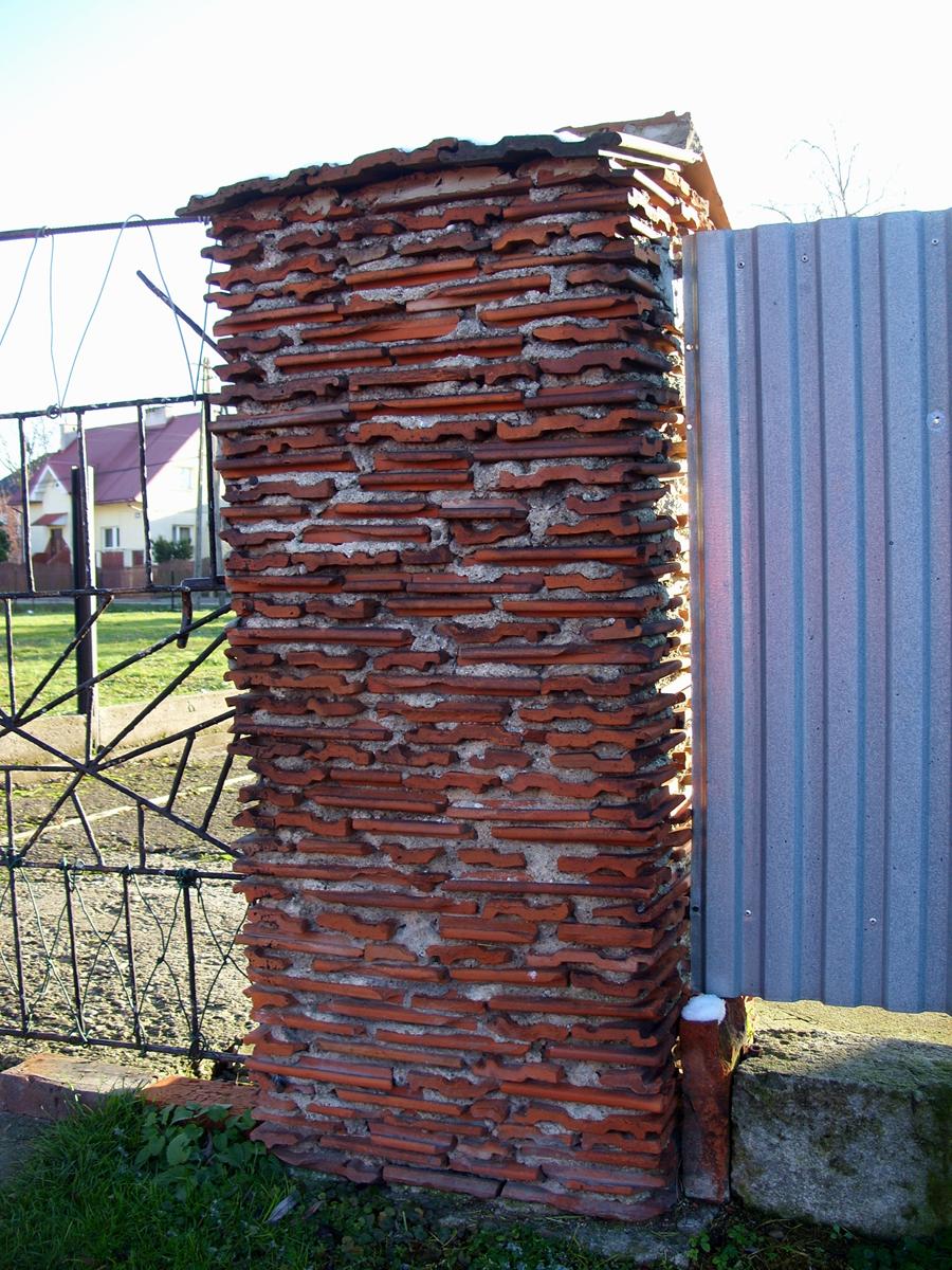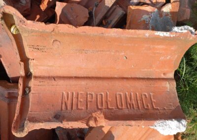 Dachówki użyte w konstrukcjach pochodzą z różnych źródeł, zależnie od okresu powstania obiektu: ze zniszczonych działaniami wojennymi domów (tych najmniej, ponieważ wówczas domy były przeważnie kryte strzechami), zakupione na przykład w cegielni Wimmera w Niepołomicach jako wybrak produkcyjny, „załatwione” ze spalonego przez partyzantów (21 V 1943r.) tartaku Sägewerk Klaj, „wyhandlowane” po wojnie od Sowietów okupujących składnicę amunicji (te zdmuchnięte wybuchem przy wysadzaniu przez uciekających Niemców tajnego laboratorium „K5”), a obecnie z rozbiórki starych domów.