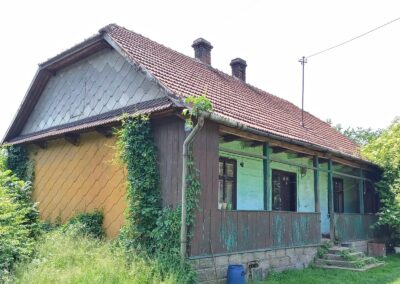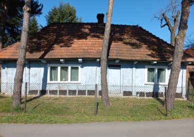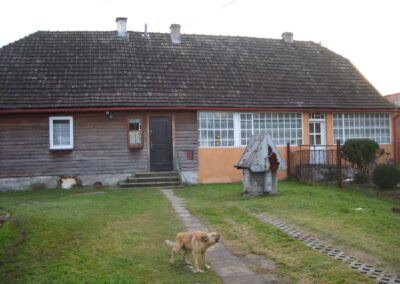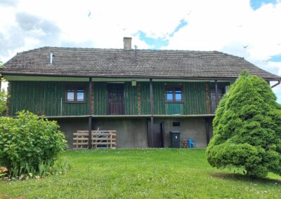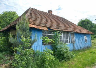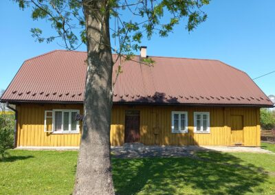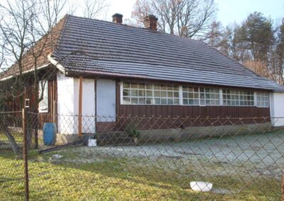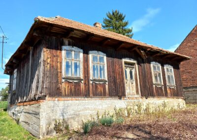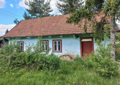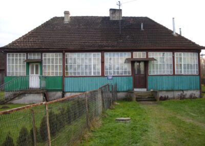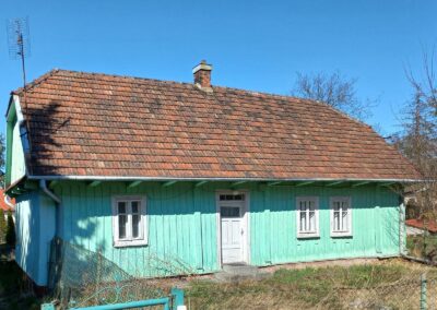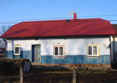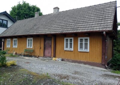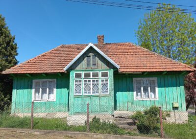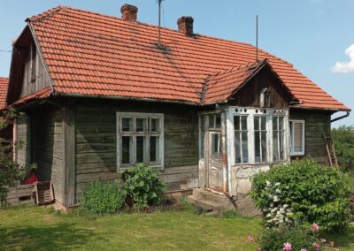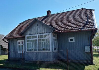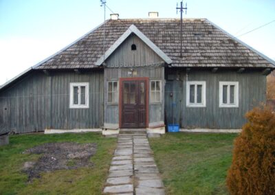 W okresie międzywojennym zaprzestawano już w sumie używać glinianych polep do okrywania wierzchnich ścian zrębowych zastępując je drewnianą boazerią zewnętrzną (później np. płytkami eternitowymi i pilśniowymi), jednakże plan domów nadal naśladował stosowany w chatach rozkład z centralnie umieszczoną sienią i pomieszczeniami do niej przylegającymi. W zasadzie zaprzestawano też budowania domów w układzie chat chałupniczych z bocznymi drzwiami, jednakże stosowano rozwiązania rozkładu pomieszczeń przysiennych. Odchodzono także od mieszkalno-inwentarskiej funkcji domostw na rzecz osobnych budynków hodowlanych, jednak nierzadko w zestawieniu budynków występowały nadal pomieszczenia gospodarcze (zdj. 17 – 24).