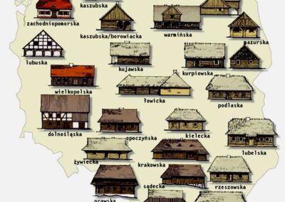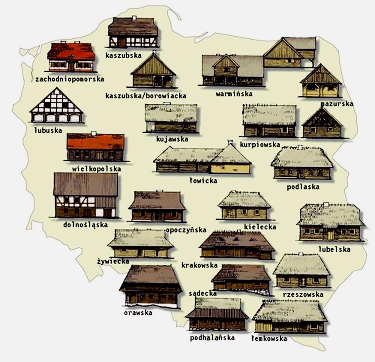 W budownictwie wiejskim XIX i XX w. poczesne miejsce zajmowały budynki mieszkalne, czyli chaty. W granicach międzywojennej i dzisiejszej Polski w zależności od regionu było duże zróżnicowanie w konstrukcji chat, grażd czy chyż, co jest atrybutem polskiej regionalności (zdj. 1).
