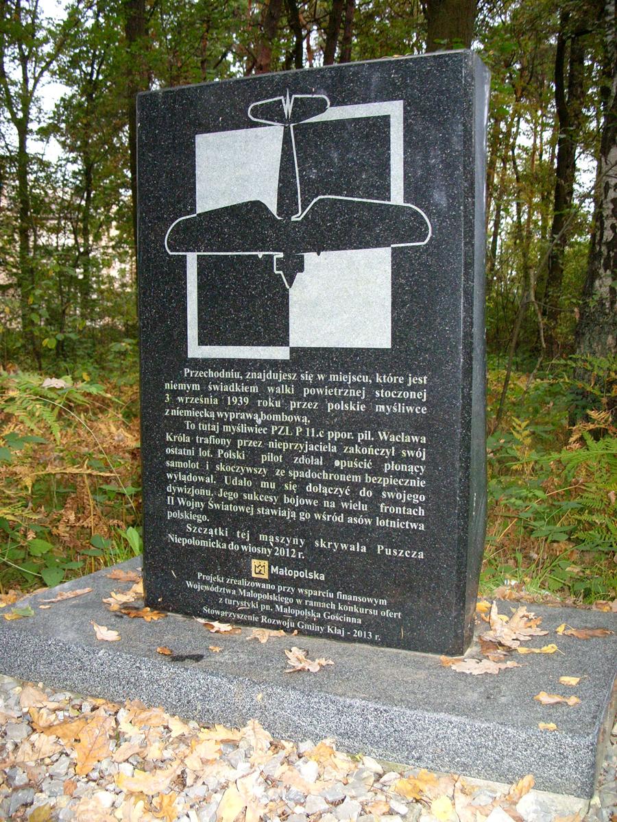 W sztabie składnicy ppor. Król dowiedział się, że: „Dwa samoloty niemieckie spadły w niedalekiej stąd odległości” – informację tę przekazał zapewne por. Fidziński po odebraniu meldunków po powrocie patroli [3]. Autor wspomina też: „Moja jedynka leżała zdruzgotana i spalona w pobliskim zagajniku” [4], można z tego wnioskowa, że był na miejscu upadku swojego myśliwca. Po 2 godz. po ppor. Króla przyjechał lekarz dywizjonowy i zabrał go do Krakowa, gdzie młody lotnik napisał tęskny list do narzeczonej do którego dołączył kwiatek zerwany w Kłaju.