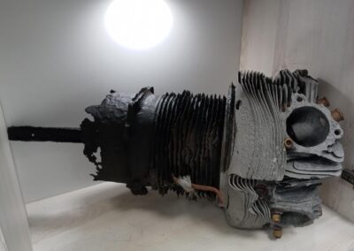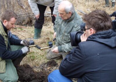 [4] – W. Król pisze „spalona”, nie dopalająca się, czy wypalona – wnioskować należy więc, że patrol wysłany przez por. Fidzińskiego ugasił pożar w zarodku. Potwierdziły to wykopaliska; samolot nie był wypalony do cna i pomimo, że 73 lata przeleżał w bagnie wiele elementów było w idealnym stanie właśnie dzięki niespalonej benzynie wchłoniętej przez ziemię. Podczas eksploracji woń paliwa lotniczego z 1939r. czuć było w dużej odległości od wykopu – to był zapach historii!