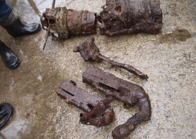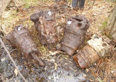 [8] – lej przy piekarni był tak duży i stromy, że gdy wpadła do niego krowa, to nie udało się jej już wyciągnąć; lej zasypano-relacje świadków.